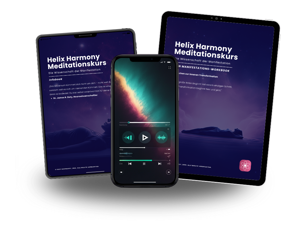 Keine neue App, keine komplizierten Plattformen. Der Helix Harmony Meditationskurs funktioniert über Spotify – die Plattform, die du bereits täglich nutzt. Manifestation wird so einfach wie Musik hören.